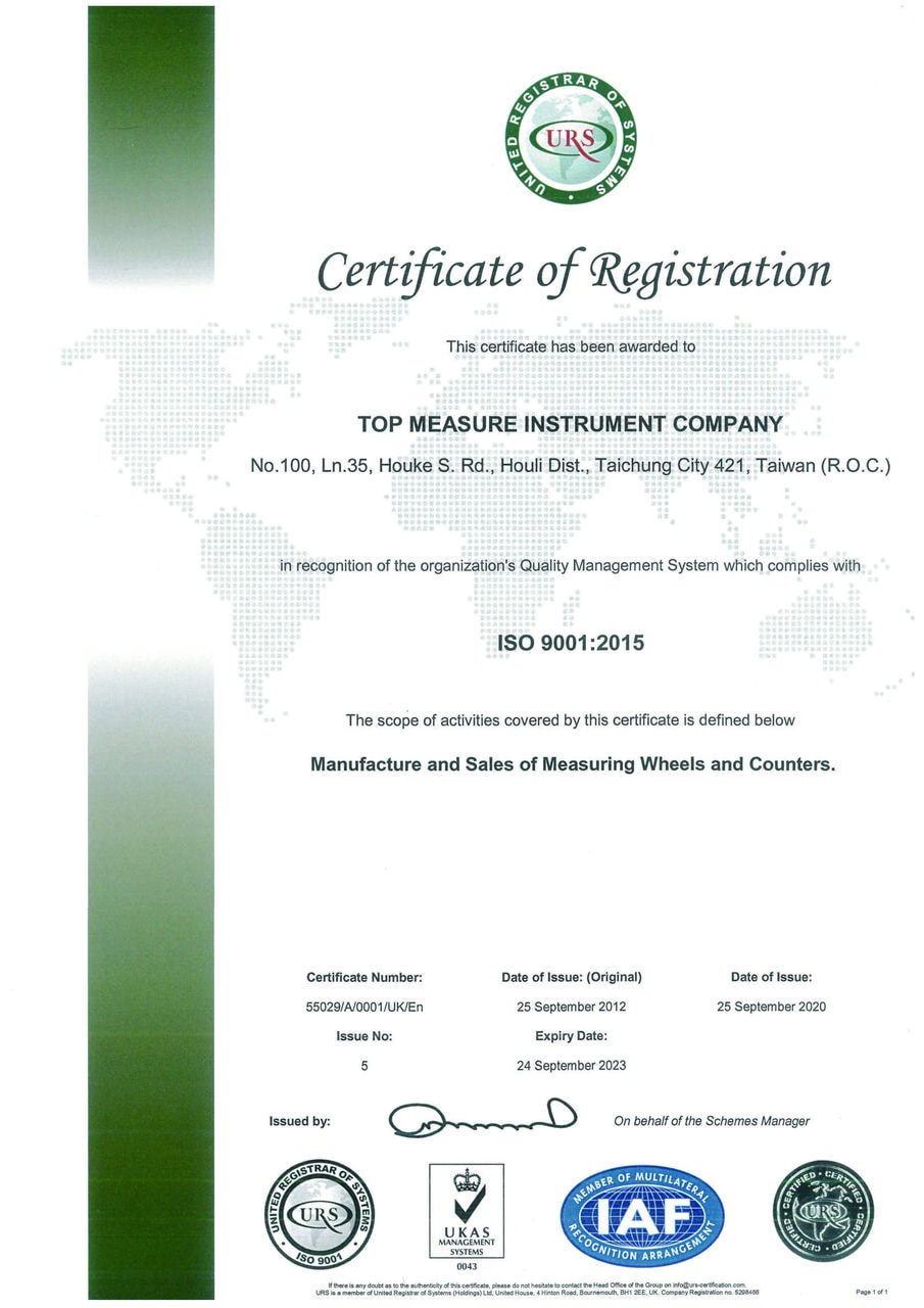 Established in 1998, we are the pioneer of designing and manufacturing measuring wheel in Taiwan. As a professional provider, integrity and honesty are our core value, focusing on products and customer service, Top Measure provides brilliant quality, advanced design and remarkable reputation in the global market.
